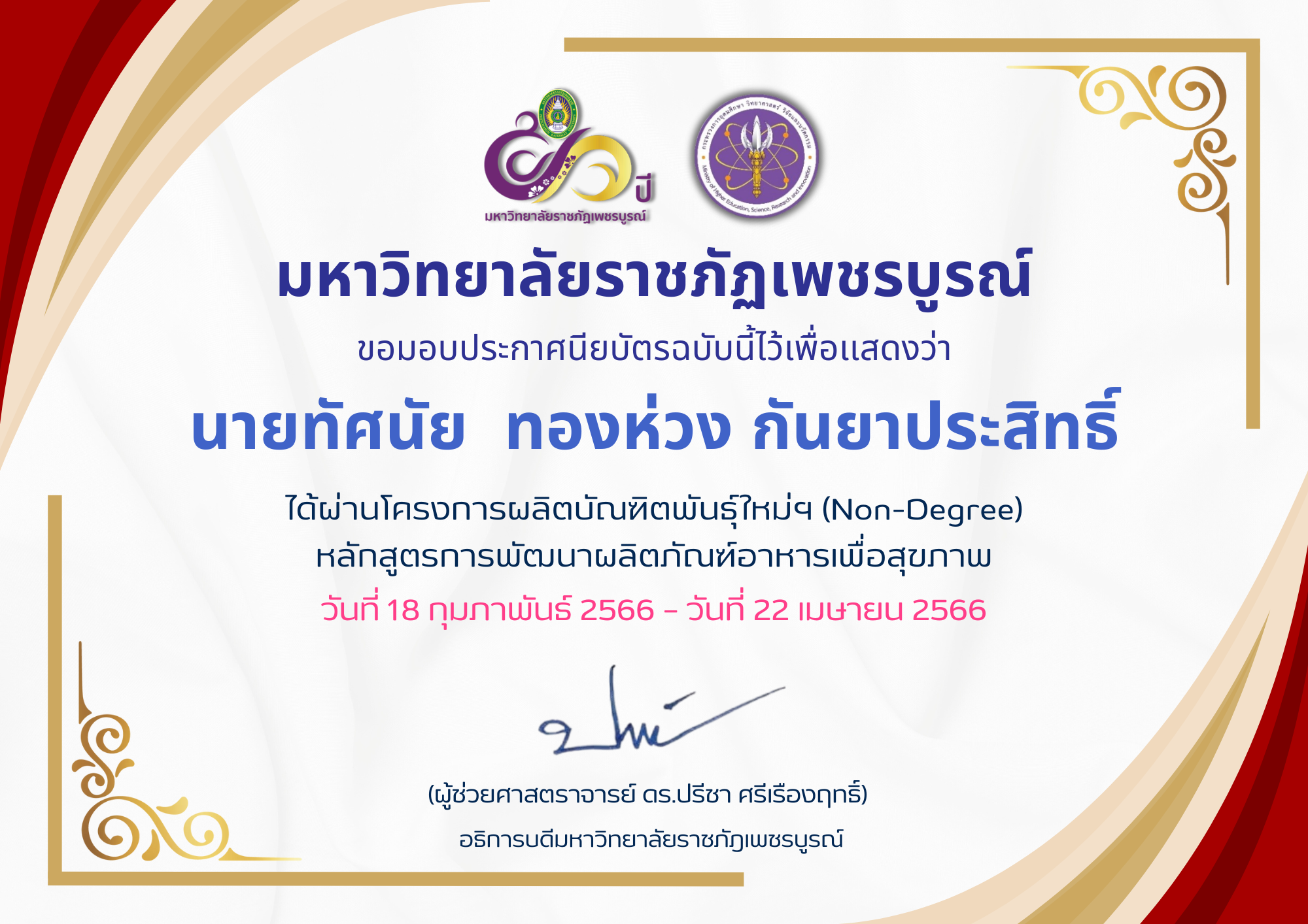 | 11 | นายทัศนัย ทองห่วง กันยาประสิทธิ์ | 9 | ดาวน์โหลดประกาศนียบัตร |