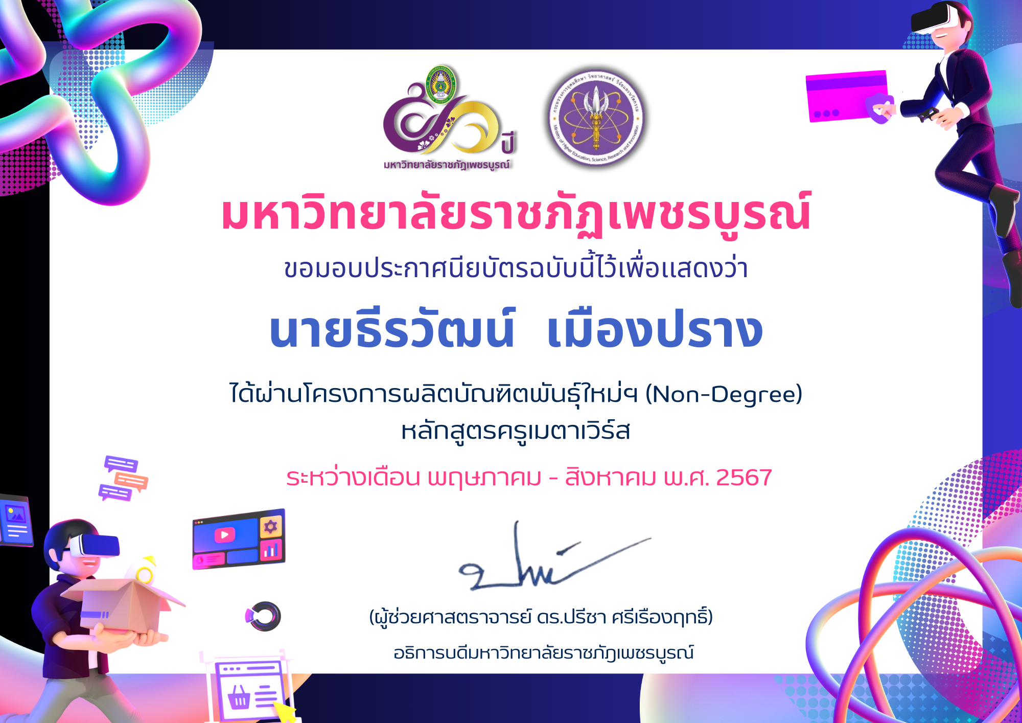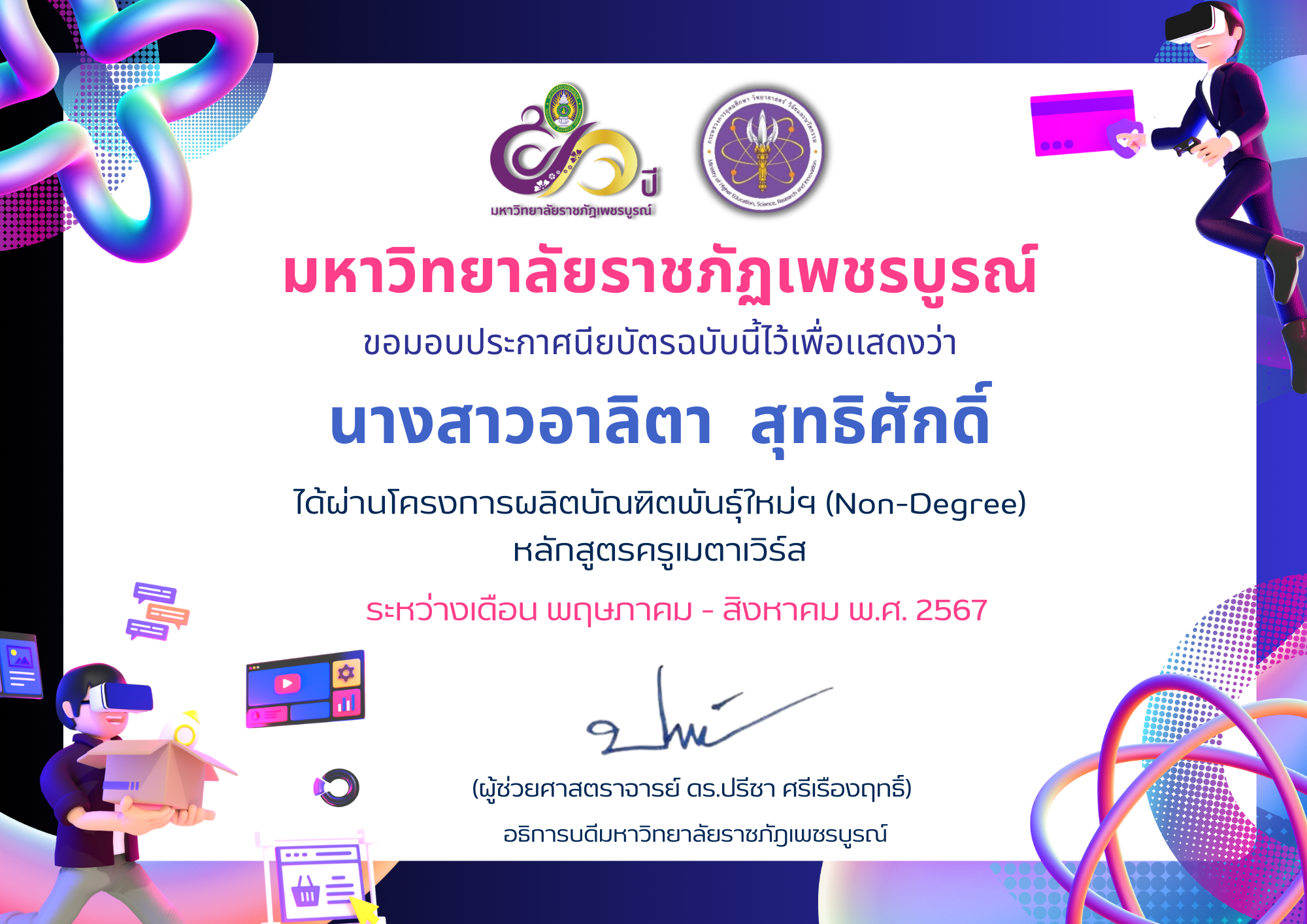 | 2 | นางสาวปวีณา วิเชียรรัตน์ | 9 | ดาวน์โหลดประกาศนียบัตร |