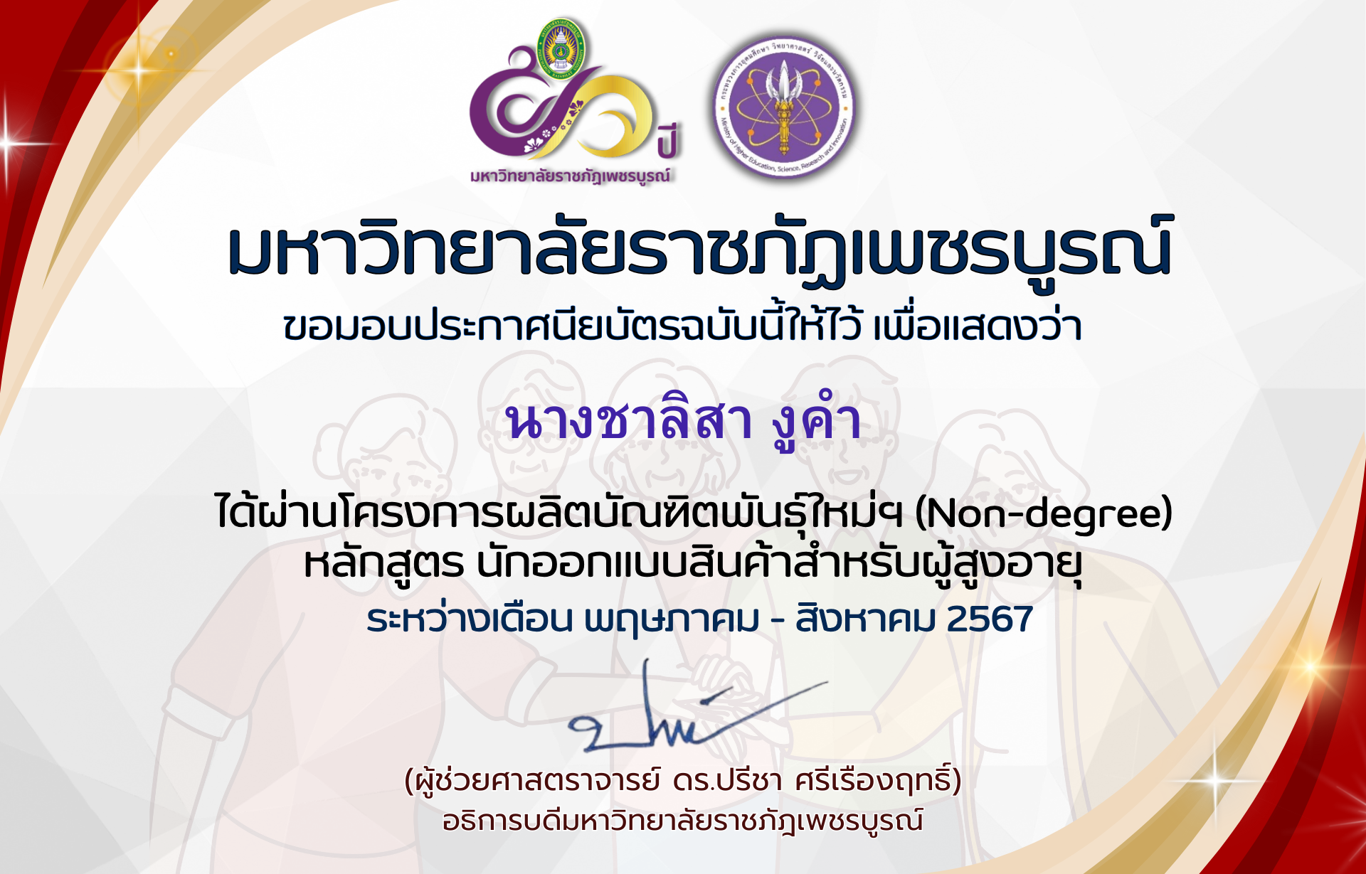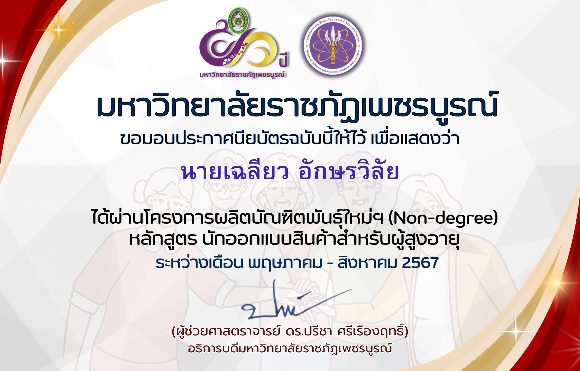| 19 | นายวัชรชัย วันเพ็ง | 9 | ดาวน์โหลดประกาศนียบัตร |
