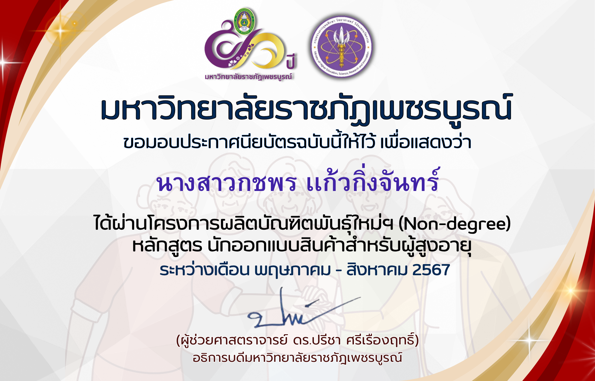 | 5 | นางสาวพรทิพย์ แก้วแวว | 9 | ดาวน์โหลดประกาศนียบัตร |